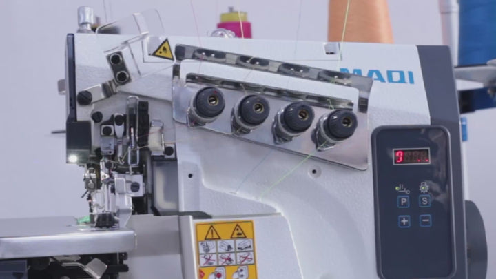 Máquina fileteadora de 4 o 5 hilos con motor servo ahorrador incorporado dentro del cabezote, hasta 7000rpm, pantalla digital, graduación de velocidad, lubricación automática.